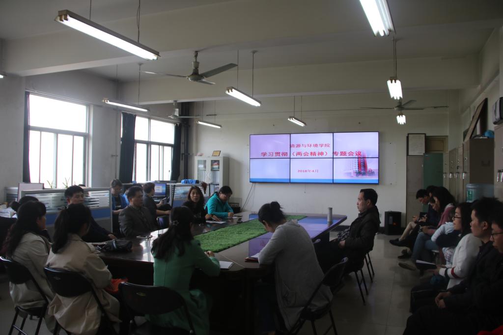 4月9日下午,资环学院组织全体教师集中学习2018年全国两会精神。今年是改革开放四十周年,是全面贯彻党的十九大精神的开局之年。