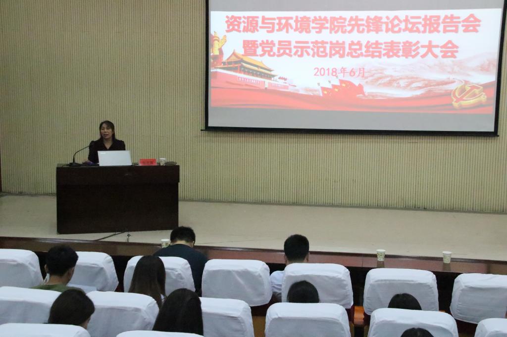 为推进91偷拍 薪火先锋党员引领工程持续深入开展,91偷拍 在广大学生中开展了“树典型,做榜样,争当资环先锋”一系列创建活动,在全院形成了学有榜样、做有标尺、赶有目标的浓厚氛围,涌现出了一大批优秀学生党员和优秀个人。为了更加充分发挥优秀党员示范、带动和辐射作用,资源与环境学院于2018年6月1日下午三点在图书馆一楼报告厅特举办学院先锋论坛报告会暨党员示范岗表彰大会”。出席本次大会的有资源与环境学院党委书记高扬帆、团委书记叶晖、团委副书记李新安、团委辅导员姜丽娟、团委辅导员侯超逸,以及报告团成员孙婷婷、曲凯歌、陈茹、徐永记、董丽及部分党员代表和17级学生。