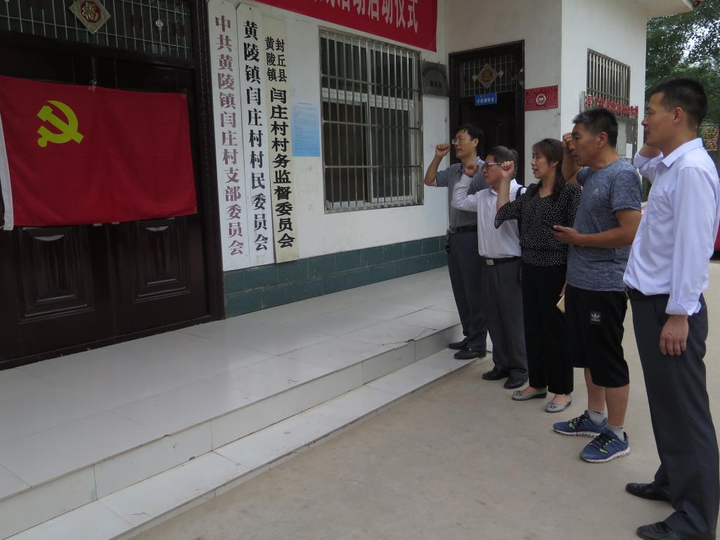 7月10日上午,在高扬帆书记带领下,资环学院党政领导班子到我校驻村第一书记派驻村——封丘县黄陵镇闫庄村开展“不忘初心、牢记使命”主题教育。到村后,在驻村第一书记、学院副书记李军民书记的陪同下,先看望了学院联点贫困户,送去慰问品,询问其近期生活情况,又陪同其到农田查看玉米生长情况,并帮助间苗,提供技术指导。随后在李书记带领下,一行人一起查看了村内种植养殖情况和塑料大棚建设情况,为当地大棚利用建言献策,为闫庄村早日脱贫摘帽提供支持。最后在高书记带领下,党政领导班子成员面对党旗进行了庄严宣誓,重温入党誓词,不忘教书育人初心,牢记立德树人使命。