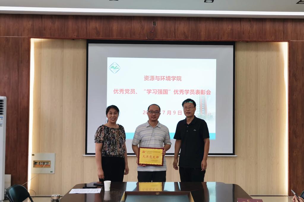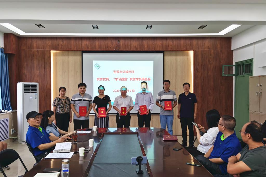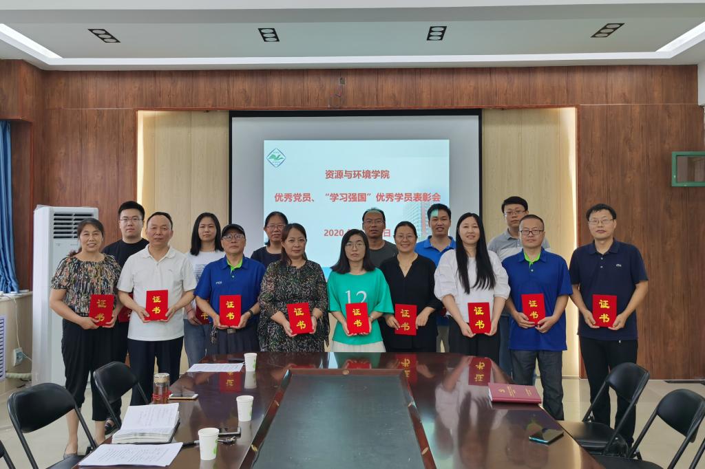 7月9日上午,资源与环境学院在实验楼E307办公室举行“学习强国”优秀学员表彰大会。学院党政领导、各支部党员参加会议。会议由院党委副书记刘军锋主持。
