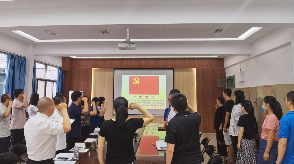 最后,全体参会人员面对党旗,重温了入党誓词。