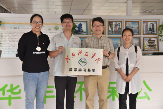 最后,环境科学系主任谢国红代表学院与华丰环保机械设备有限公司总经理许林博进行教学实习基地牌匾交接仪式。