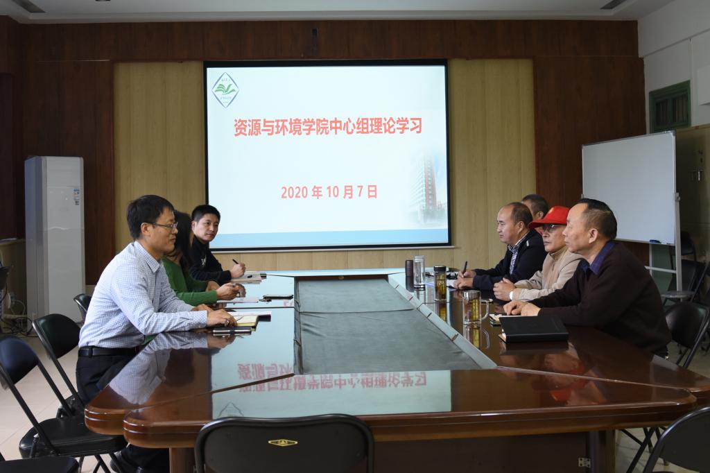 2020年10月7日,资源与环境学院组织召开党委中心组理论学习会议,专题学习研讨习近平总书记在科学家座谈会上的重要讲话精神。党委中心组全体成员参加会议。