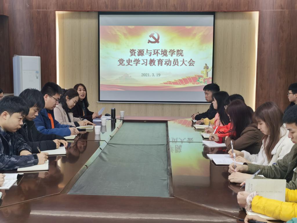 3月19日下午,资源与环境学院党史学习教育动员大会暨2021年春季“开学第一课”在实验楼E307会议室召开。院党委书记高扬帆、全体专兼职辅导员及全体学生党员参加会议。