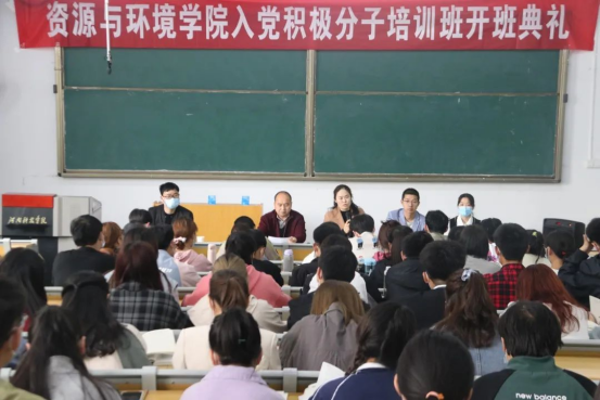 4月9日,资源与环境学院于一合一教室举行第五十二期党课培训班开班典礼。院党委副书记刘军锋、团委书记姜丽娟、辅导员解双喜、兼职辅导员李想、陈茹及106名积极分子参加了此次开班典礼。