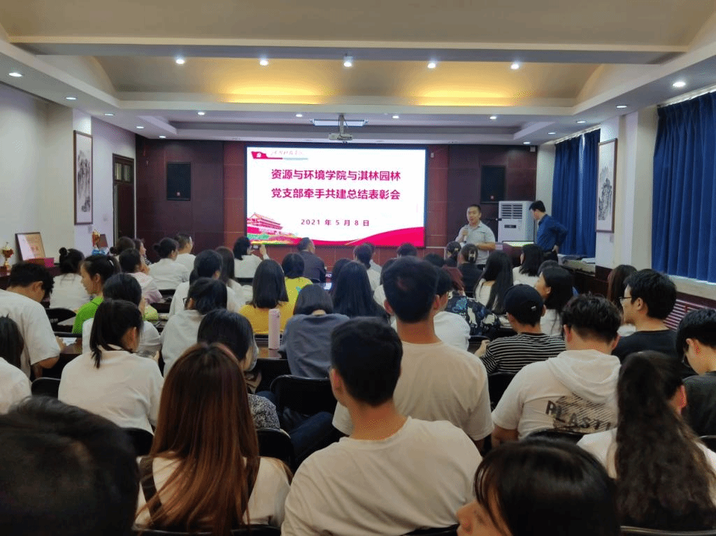 为迎接建党100周年,扎实推进党史学习教育,做到学党史、悟思想,办实事,将所学专业知识与实际生产实践相结合,5月8日下午,资源与环境学院学生和河南淇林园林技术有限公司党支部共建总结汇报表彰会在E302会议室举行。资源与环境学院党建组织员张少颖、王运兵教授及河南淇林园林技术有限公司副总经理李支立、郝晓娜等出席会议,学生第三、四、五支部全体党员,植保181-184全体学生等80余人参加表彰会,会议由研究生党支部书记李松伟主持。
