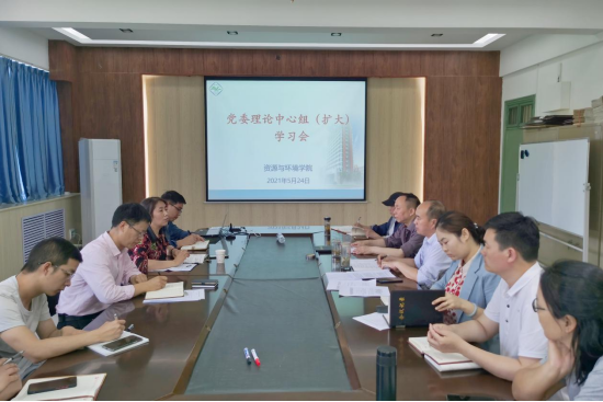 5月24日上午,资源与环境学院在实验楼E307会议室举行党委理论中心组(扩大)学习会。学院党政领导及全体党支部书记等十余人参加会议。会议由党委书记高扬帆主持。