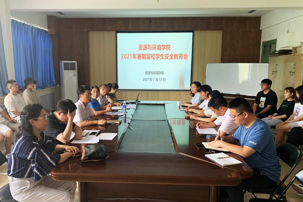 为做好2021年暑期留校学生的管理工作,落实留校学生的安全教育和规范管理,7月13日下午,资源与环境学院实验楼E307会议室召开2021年暑期留校学生安全教育会议,院党委书记高扬帆、院长王洪亮、党委副书记刘军锋、副院长王国昌、留校学生指导教师、全体辅导员及留校学生参加会议。会议由院党委副书记刘军锋主持。
