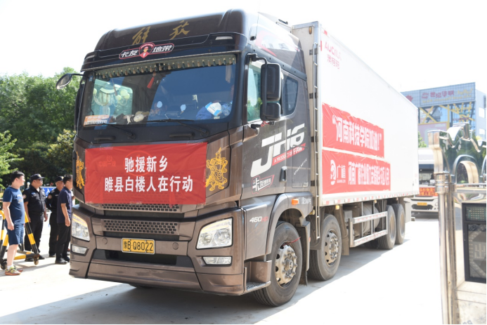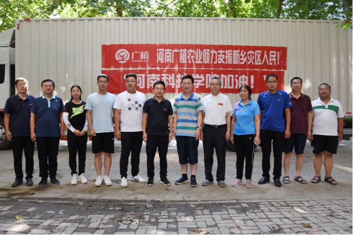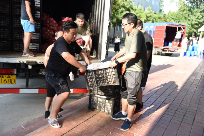 7月26日,资源与环境学院2013届毕业生秦晨亮心系母校灾情,积极组织协调社会爱心人士,顶着炎炎烈日,带着睢县白楼乡人民的爱心,为母校师生送来新鲜蔬菜和灾后防疫消杀物资。