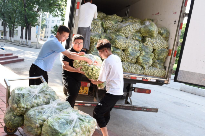 校友秦晨亮,植物保护专业084班学生,现任商丘市睢县白楼乡副乡长,得知学校受灾后,第一时间联系在校资源与环境学院有关领导和老师,积极协调,奔波数百里,于7月26日下午,赶到到91偷拍 ,为全校师生送来了价值20余万元的新鲜蔬菜和灾后防疫消杀物资。