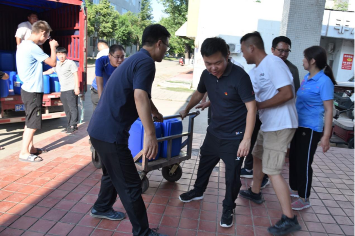 捐赠仪式后,校友秦晨亮及随行爱心人士和在校师生一起,齐心协力,把爱心捐赠物资卸载到相关场地。校友秦晨亮的无私奉献精神,代表了广大优秀校友心系母校、感恩母校、回馈母校的大爱情怀。他的这种精神必将引领更多的优秀校友、社会爱心人士、爱心企业为抗洪救灾贡献一份力量。