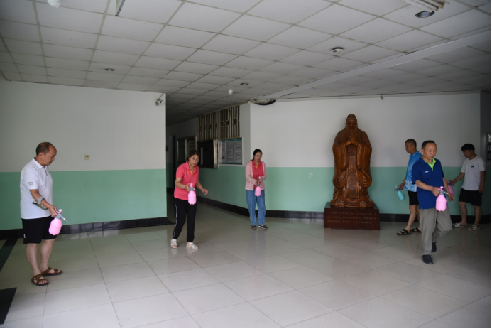 在所有人的共同努力下,一个多小时后,消杀突击队队员们对办公室、会议室、实验室及周边楼道进行了全面消杀处理,做到了不留死角、不留盲区,资源与环境学院党委用实际行动筑牢了灾后疫情防控的防线,真正做到一个支部就是一座堡垒,一名党员就是一面旗帜。