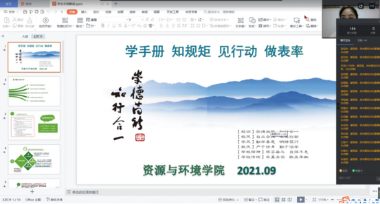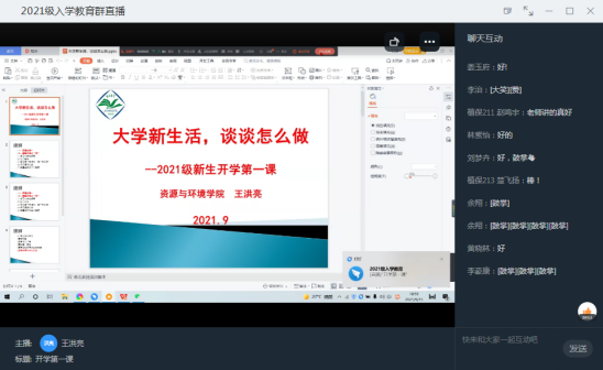 为了帮助2021级新生熟悉校园生活、更好地规划大学生涯,9月13日至18日,资源与环境学院对新生进行了为期一周的线上入学教育。学院的党政领导、团委老师以及各专业负责人从理想信念、大学生活、学生手册、专业简介等方面为新生开展了一堂堂生动详实的特色课程。