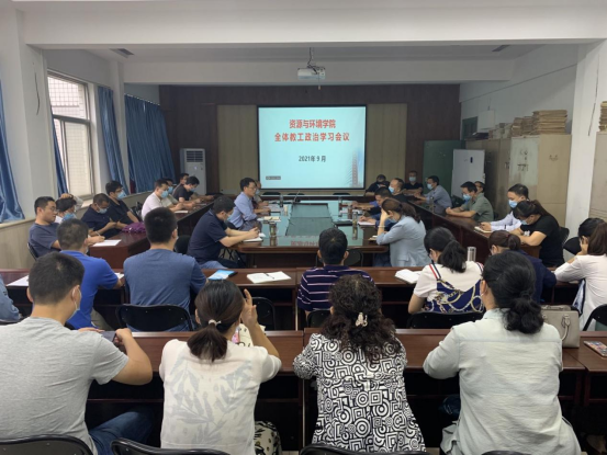 9月23日下午,资源与环境学院在E307召开全体教工政治学习会议。学院全体教师参加会议,会议由院党委书记高扬帆主持。