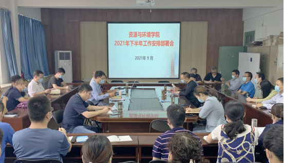 9月23日,资源与环境学院在实验楼E307召开2021年下半年工作安排部署会。学院党政领导及全体教师参加会议,会议由院党委书记高扬帆主持。