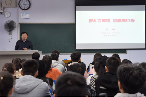 10月19日下午,为了激发广大学生的爱国热情,鼓励他们树立远大理想、做合格的社会主义接班人,校纪委书记、监察专员贺杰在6201教室以“奋斗百年路,启航新征程”为题,为资源与环境学院60余名学生作习近平总书记“七一”重要讲话精神宣讲。