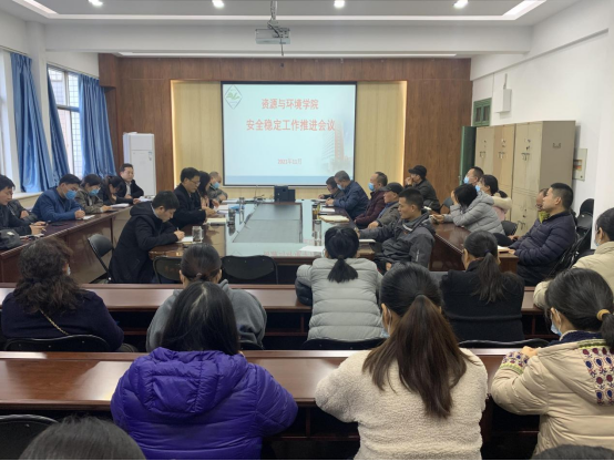 11月11日下午,资源与环境学院在E307会议室召开安全稳定工作推进会。学院全体教师参加会议,会议由党委书记高扬帆主持。