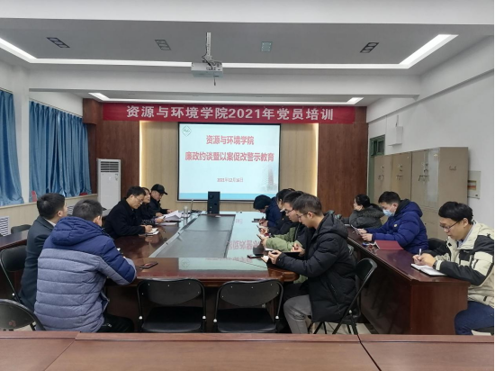 12月16日下午,资源与环境学院在实验楼E307召开廉政约谈暨以案促改警示教育会。院党政领导及全体党支部书记参加会议,会议由院党委书记高扬帆主持。