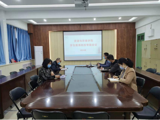 3月16日上午,资源与环境学院在实验楼E307会议室召开学生疫情防控工作会议。院党委书记高扬帆、党委副书记刘军锋及全体辅导员出席会议。