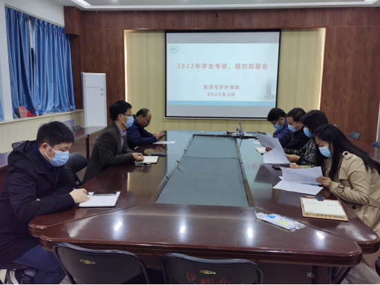 3月16日上午,资源与环境学院在实验楼E307召开2022届毕业生考研复试、调剂部署会。学院党政领导、团委及各专业负责人参加了此次会议。