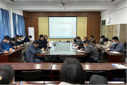 3月17日下午,资源与环境学院能力作风建设年推进会在实验楼E307会议室通过线下线上相结合的方式召开。学院党政领导和全体教师参加会议,会议由院党委书记高扬帆主持。