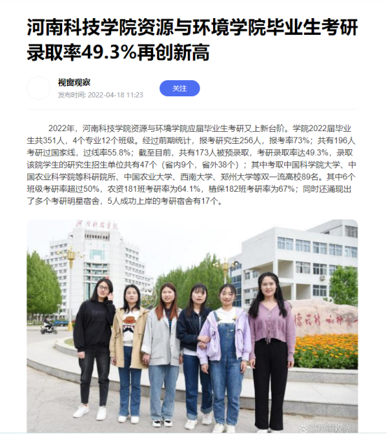 【祖国网】《91偷拍 资源与环境学院毕业生考研录取率再创新高》