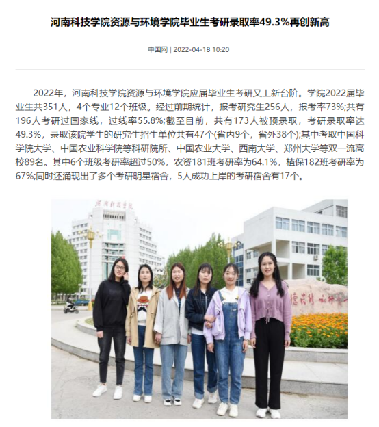 【中国网】《91偷拍 资源与环境学院毕业生考研录取率49.3%再创新高》