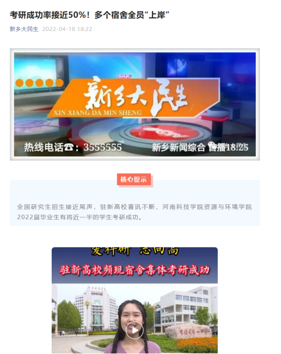 【新乡大民生】微信公众号《考研成功率接近50%!多个宿舍全员“上岸”》