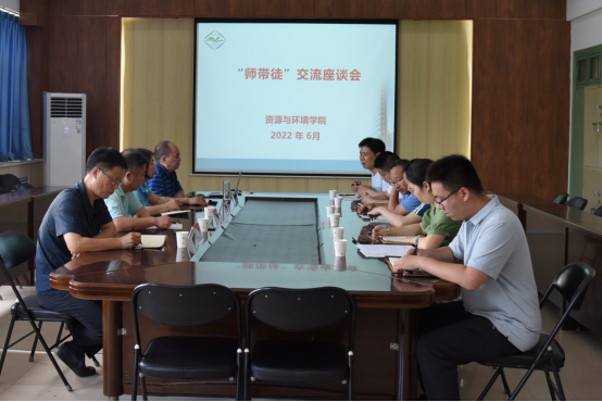 6月13日下午,资源环境学院在实验楼E307会议室举行“师带徒”交流座谈会。校工会副主席娄国强、资源与环境学院党委书记高扬帆、院长王洪亮、党委副书记刘军锋及“师带徒”活动参与教师共十余人参加会议。会议由院党委副书记刘军锋主持。
