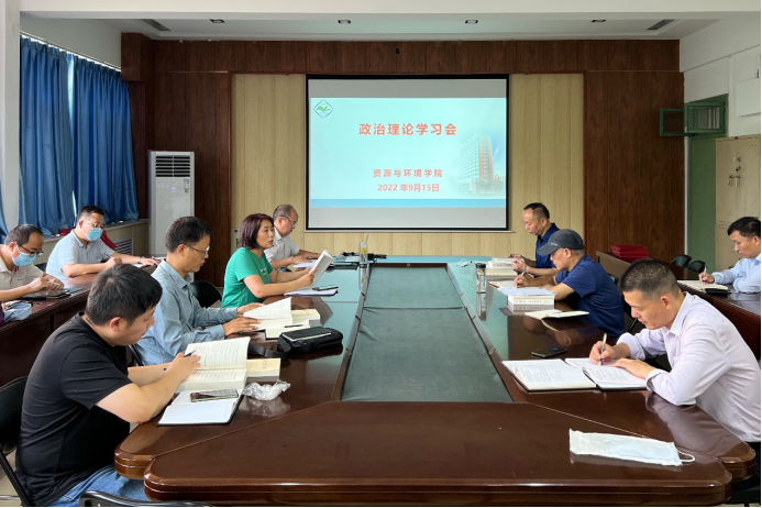 9月15日,资源与环境学院在实验楼E307会议室举行政治理论学习会议,学院全体领导班子成员、科级干部、党支部书记参加会议。会议由党委书记高扬帆主持。