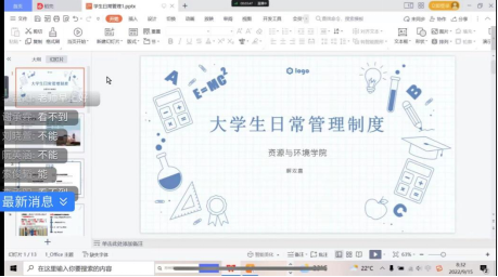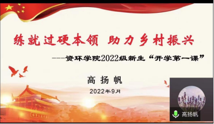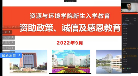 为厚植2022级新生爱校荣校情怀,保障大学生德智体美劳全面发展。9月13日至22日,资源与环境学院扎实开展2022级新生入学教育工作。学院的党政领导、团委老师以及各专业负责人从理想信念、大学生活、学生手册、专业简介等方面为新生开展了一堂堂生动详实的线上课程。