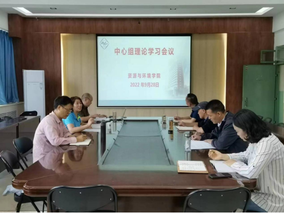 9月28日,资源与环境学院在实验楼E307会议室举行党委理论学习中心组学习会,学院全体领导班子成员参加会议。会议由党委书记高扬帆主持。