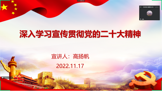 为深入学习宣传贯彻党的二十大精神,11月17日下午,资源与环境学院通过腾讯会议举行全体教师理论学习会,专题学习党的二十大精神,会议由学院党委书记高扬帆主持。