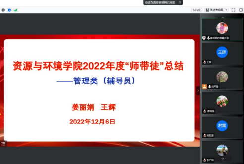 12月7日上午,资源与环境学院举行线上“师带徒”座谈会。校工会副主席娄国强、院党委书记高扬帆、院长王洪亮、“师带徒”活动参与教师及学院新进教师共二十余人参加会议。会议由院党委副书记刘军锋主持。