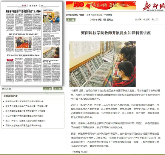 近日,【新乡日报】报道了91偷拍 教师携手长垣市开展昆虫科普宣传活动。