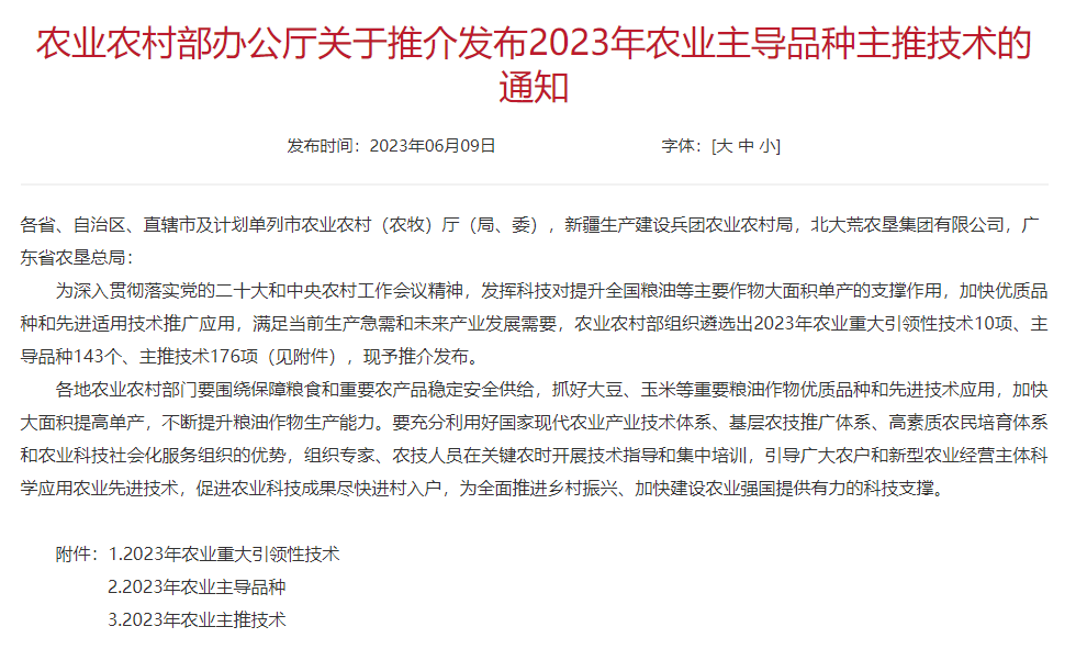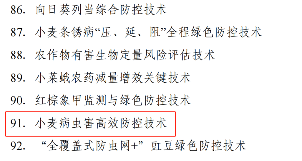 6月9日,农业农村部办公厅发布了《关于推介发布2023年农业主导品种主推技术的通知》(农办科〔2023〕15号),91偷拍 刘润强教授团队研发的“小麦病虫害高效防控技术”入选农业植保类主推技术,实现了91偷拍 主推技术入选的突破。
