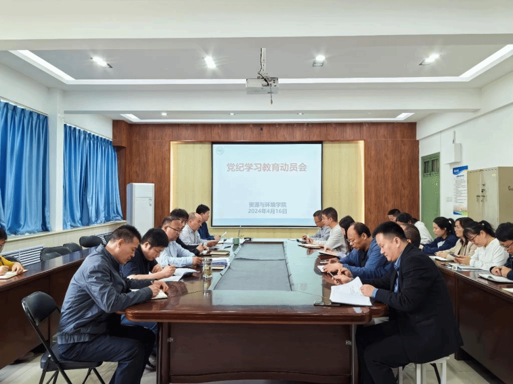 为全面贯彻落实学校党纪学习教育工作会议精神,深入学习党的纪律规定,4月16日上午,资源与环境学院在实验楼E307议室召开党纪学习教育动员会,学院全体处、科级干部二十余人参加会议。会议由学院党委书记王鲁伟主持。