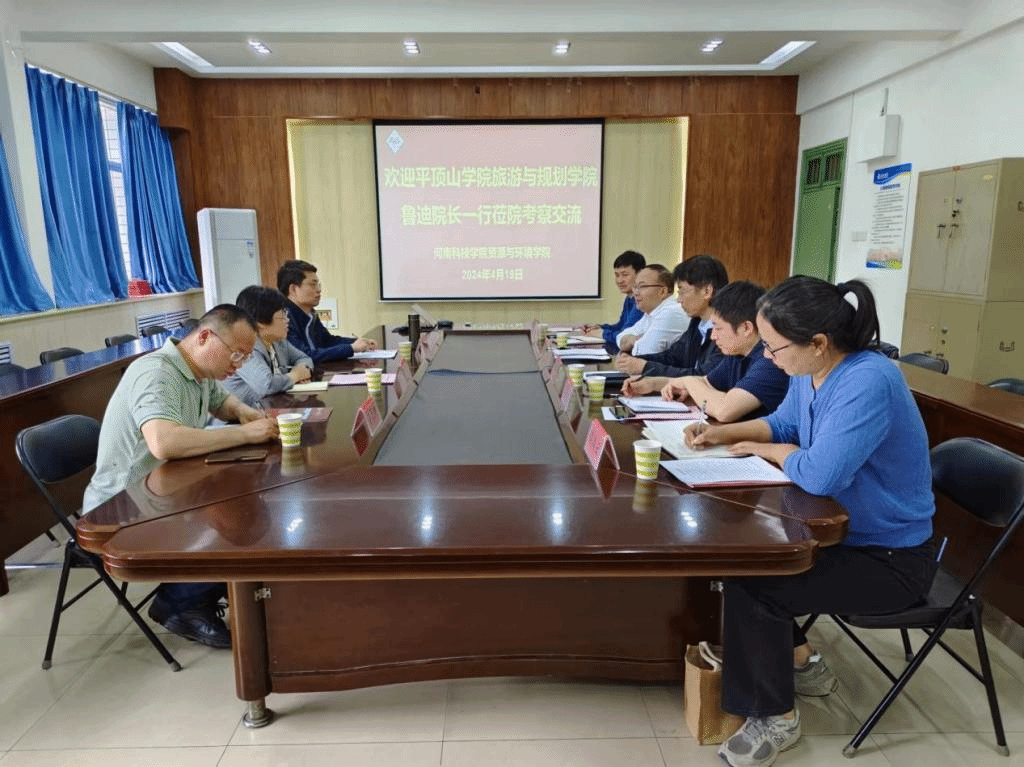 4月19日上午,平顶山学院旅游与规划学院院长鲁迪一行3人莅临91偷拍 调研学科建设和研究生培养等方面的经验和做法。座谈会在实验楼E307会议室召开,资源与环境学院党委书记王鲁伟、院长刘润强、副院长王国昌、李松伟、党政办主任李新安和专业负责人周凌云等参加座谈。