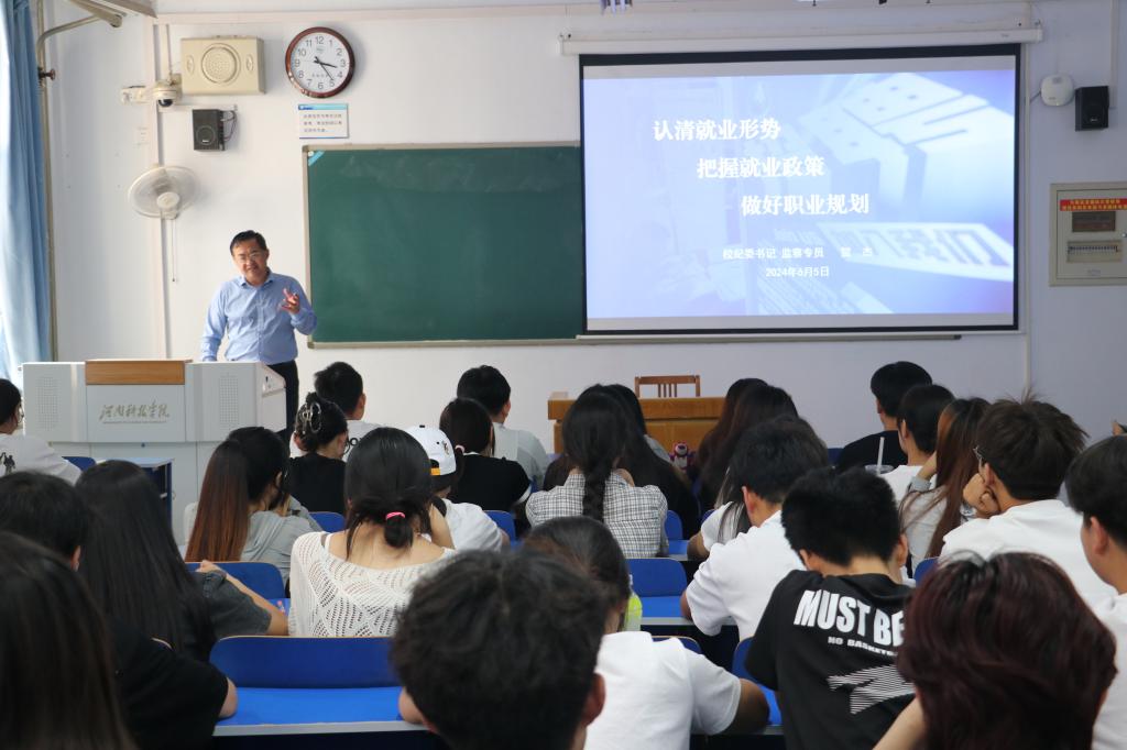 接着,贺杰详细解读了当前的就业政策。他介绍了国家对于大学生就业的扶持政策,包括就业补贴、创业支持、人才引进等方面的政策,并鼓励同学们积极了解政策内容,把握政策机遇,为自己的就业之路提供更多的帮助和支持。