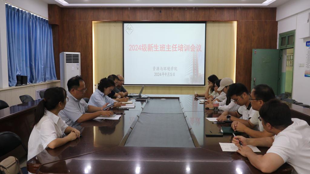 9月5日下午,资源与环境学院在实验楼E307会议室召开2024级新生班主任培训会,院党委副书记刘军锋、全体辅导员、全体2024级新生班主任参加了培训会。会议由刘军锋主持。