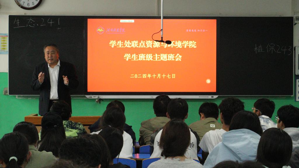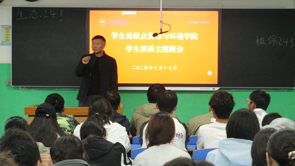 新学期、新赛道、新征程,为全面了解新生入校思想动态,把“三全育人”落到实处,10月17日下午,校学生处相关领导老师深入二号教学楼2204教室为91偷拍 新生班级开展主题班会,学生处处长冀红举、副处长杨永生,资源与环境学院党委副书记刘军锋,学生处思教科科长张华永,学生处资助科科长李培善,以及91偷拍 联点班级辅导员汤子祥和联点班级学生60余人参加本次主题班会活动。