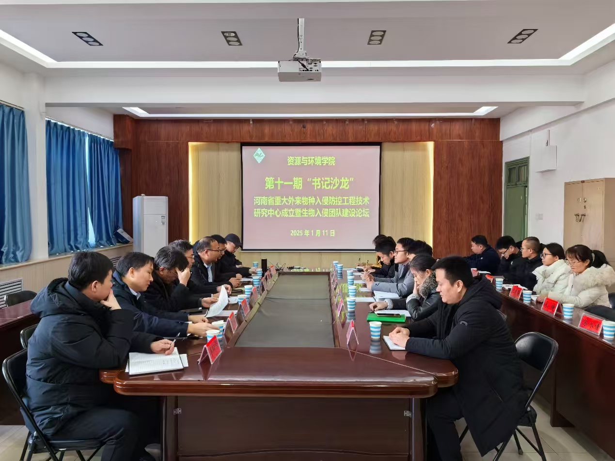 1月11日,资源与环境学院在实验楼E307会议室成功举办了第十一期书记沙龙——河南省重大外来物种入侵防控工程技术研究中心暨生物入侵防控团队建设论坛。校实验室与设备管理处处长李勇超、科技处副处长王斌出席活动并讲话。资源与环境学院领导班子成员王鲁伟、刘润强、刘军锋、李松伟以及外来生物入侵防控团队带头人、科技处副处长余昊和团队成员二十余人参与沙龙。会议由资源与环境学院院长刘润强主持。