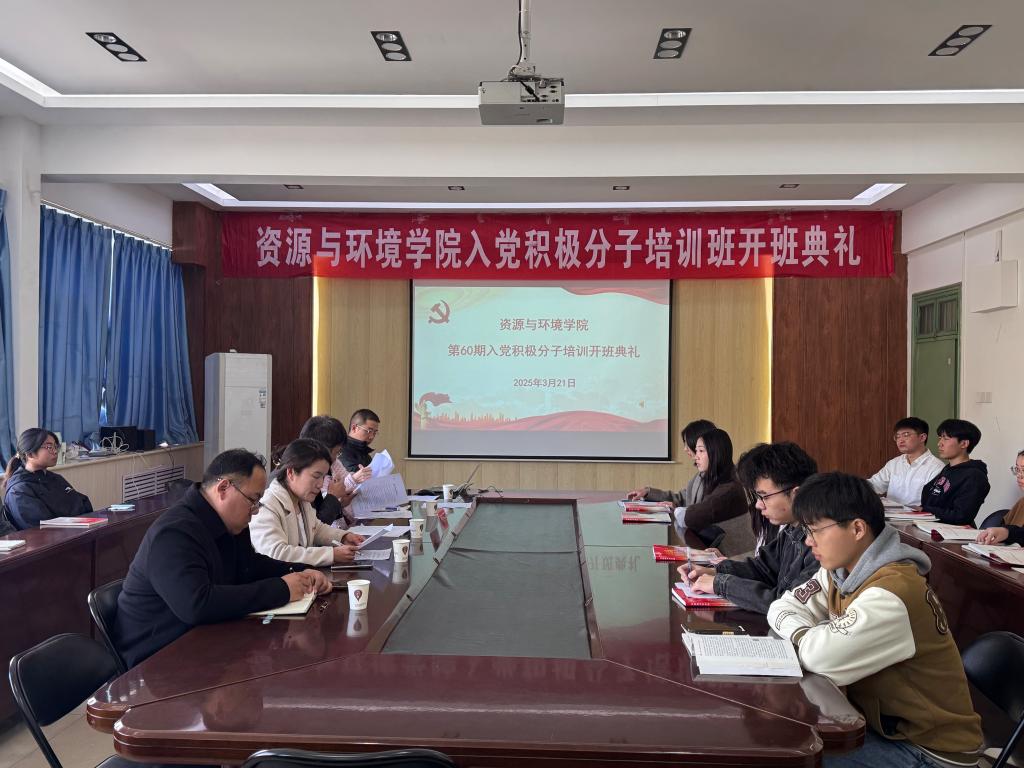 为深入贯彻党的二十大和二十届二中、三中全会精神,进一步加强入党积极分子培养教育,提升思想政治觉悟和党性修养,严格把好党员发展“入口关”和“质量关”,3月21日,资源与环境学院在实验楼E307会议室举行第60期入党积极分子培训班开班仪式。院党委书记王鲁伟出席开班仪式,第60期培训班共49名入党积极分子参加了开班仪式。开班仪式由团委书记陈冬梅主持。