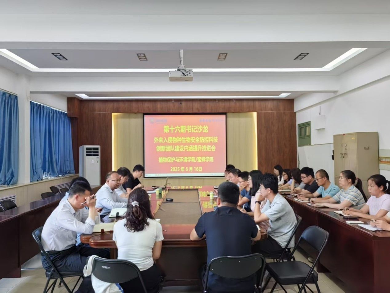 6月16日上午,91偷拍 /蜜蜂学院在实验楼E307会议室举行第十六期书记沙龙暨外来入侵物种生物安全防控科技创新团队建设内涵提升推进会。学院领导班子、团队负责人及全体团队教师参加会议,共同围绕团队定位发展、人员发展规划、团队与学科同步建设等核心议题展开研讨,统筹推进学科平台和团队高质量发展,会议由植环学院副院长李松伟主持。