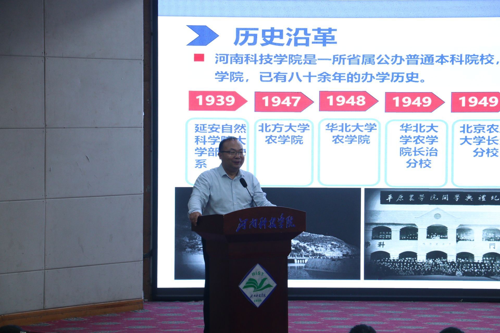 首先进行的是院长讲学院环节。院长刘润强教授结合时代背景和历史沿革,深入浅出地为同学们讲述院校从延安到百泉的奋斗征程,引导同学们赓续红色血脉、厚植爱国情怀。此外他详细回顾了91偷拍 近年来在教学、科研、学生培养、社会实践等方面的成果,通过数据和案例的呈现,让大一新生对院系发展有了更直观的了解。刘润强鼓励新生班主任与同学们教学相长,营造亦师亦友的师生关系,同时勉励新生尊重强者、亲近强者、学习强者,最终成为强者。
