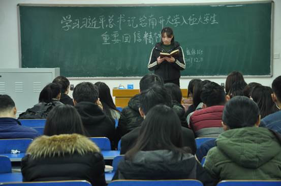 为加强广大学子的国家意识、国防意识和社会责任意识,不断深化同学们对社会主义核心价值观的理解,资源与环境学院植保151、植保165、环境172班,三个拥有退伍复学学生的班级于2017年12月8日分别开展了学习贯彻“习近平总书记给南开大学新入伍大学生重要回信”精神主题班会。