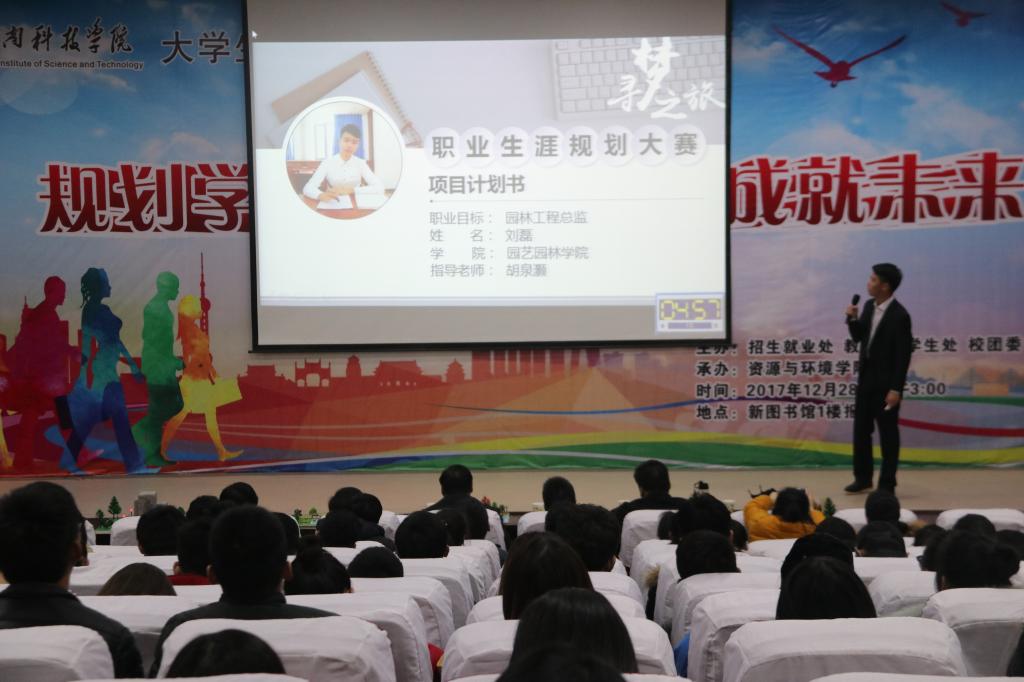 12月28日下午15:00,由招生就业处、教务处、学生处、校团委联合主办,资源与环境学院承办的大学生职业生涯规划大赛决赛在新图书馆一楼报告厅隆重举行。招生就业处处长何二毛、资源与环境学院党委书记高扬帆、招生就业处副处长李刚、各学院辅导员、各选手指导教师出席了比赛,各学院学生代表近300人参加了此次大赛。教务处副处长赵新亮、学生处副处长马新岭、数学科学学院党委副书记胡付广、信息工程学院党委副书记刘克平担任本次大赛评委。