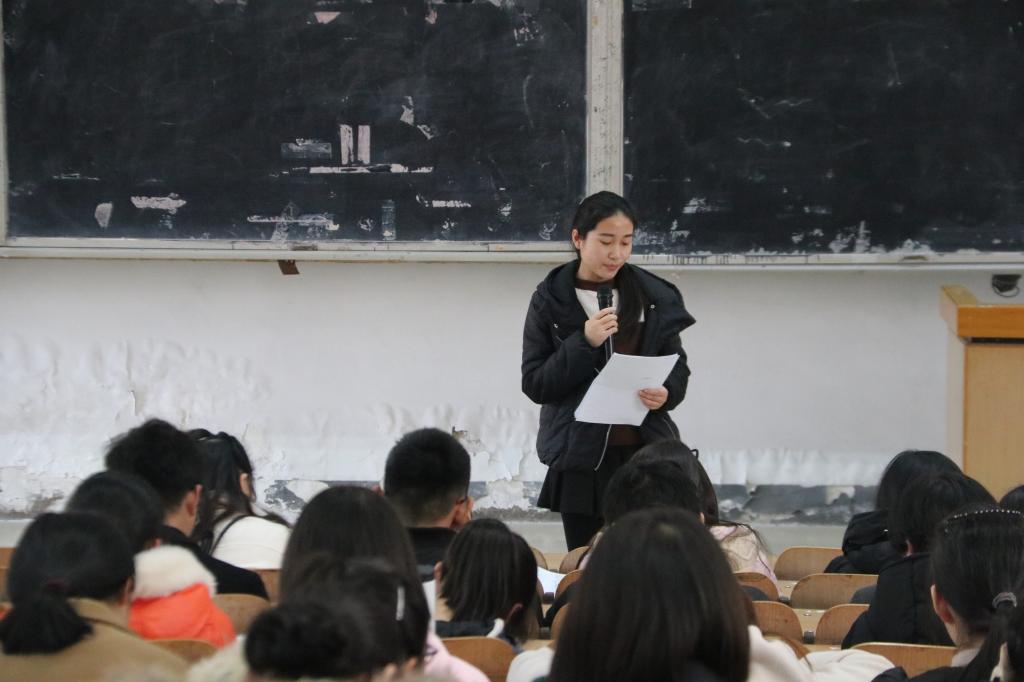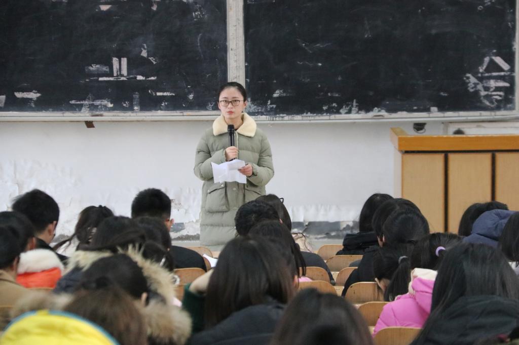 为了让学生们树立正确的人生态度,提高个人的思想觉悟,激励学生努力拼搏,奋发向上。资源与环境学院于2017年12月25日中午12:50在0#1教室举行了2017年度励志报告会,资源与环境学院屈佳佳、陈静、文法学院宋浩楠、机电学院杨凤敏作为此次励志报告会的宣讲人,参加报告会的还有15、16级获得2017年度助学金的同学。