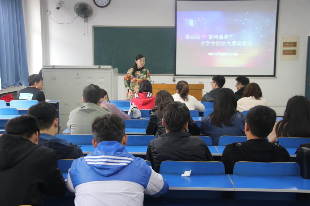 为了积极响应国家大力支持大学生创新创业的号召,鼓励大学生投身创新创业实践中,在第四届“富鸿杯”大学生创业大赛前夕,资源与环境学院在3月24日上午9:00于6203教室举办了第四届“富鸿鼎杯”大学生创业大赛动员大会。此次动员会由资源与环境学院创业联盟发起,团委书记叶晖老师主讲,16、17级百余名学生参加了大会。
