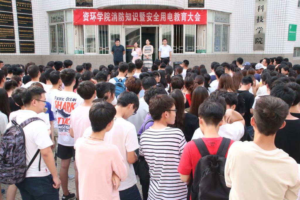 为进一步加强学生宿舍安全教育,增强学生的安全防范意识和避险能力,切实保障广大同学人身及财物安全,资源与环境学院于2018年6月21日下午4:30在天井举行资环学院消防知识暨安全用电教育大会。参加此次大会的有资环学院团委书记叶晖、团委副书记李新安、团委辅导员姜丽娟、团委辅导员侯超逸和15、16、17级400余名学生。